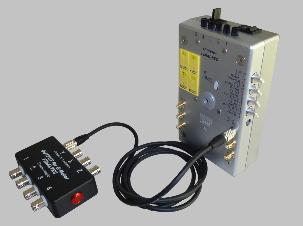 この電子U字管は電子式加速度センサー内蔵で前後Gはもちろん、左右G、温度も同時に計測でき外部入力も持ち合わせていますので各種試験評価に対応できます。